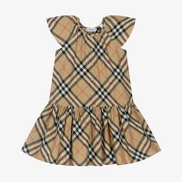 Teen girls orange dress, by luxury British brand Burberry, patterned with the designer's signature Monogram logo. In a gently flared shape, it has a cosy turtle neck and is knitted in super soft, mid-weight luxurious Merino wool.
