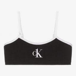 Pink bralette for girls by Calvin Klein, made in soft and stretchy cotton jersey. Lightly padded, it is trimmed in white and has the brand's iconic monogram logo in white on the front. The elasticated shoulder straps are adjustable.