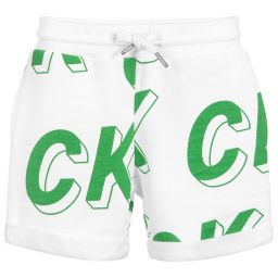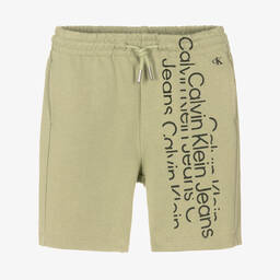 Teen boys blue regular-fit shorts by Calvin Klein Jeans, made in stretch denim with a vintage wash. There is a beige CK logo embroidered on the front and a black logo patch on the back. In a classic five pocket style, they have an adjustable waistband and medium rise waist.