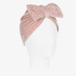 Girls beige velour diamanté turban by Caramelo Kids is crafted from super soft, mid-weight velour. The elegant bow adorned with gold diamantés paired with the brand's logo charm adds a touch of sophistication. Ideal for special occasions or adding a chic finish to everyday outfits. Limited quantities available, so seize this last chance to buy.