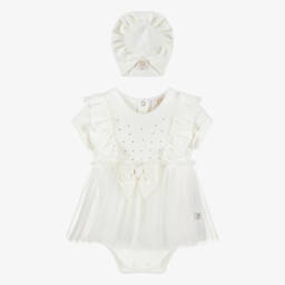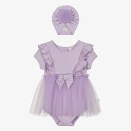 Designed for baby girls, the pink jersey and tulle dress set by Caramelo Kids features a delightful combination of soft ribbed cotton and a charming tulle skirt. The dress is adorned with elegant ruffles, sparkling diamanté, and a fixed bow, adding a touch of whimsy. Practical popper fastenings and attached jersey knickers ensure ease of wear. Accompanied by a matching turban hat, this stylish ensemble is perfect for special occasions. Limited quantities available, making it a last chance to buy this beautiful set.