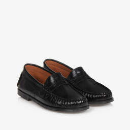 Exclusive to Childrensalon, a pair of dark navy blue leather penny loafers for boys by Children's Classics. They have all the usual design characteristics of a penny loafer, from the stitched trims and cut-out detail across the foot. They have a soft leather lining and a rubber outer sole.