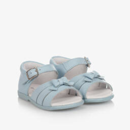 Exclusive to Childrensalon, red sandals for little girls by Children's Classics. Made from soft leather and lightly padded, the strap across the foot has a pretty red bow on the front.