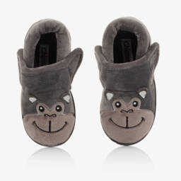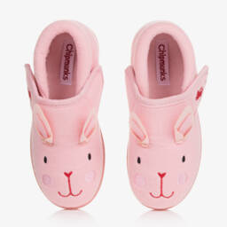 Beautifully soft navy blue slippers for girls by Chipmunks, with plush textile uppers. They have a pretty pink embroidered fox print on the upper. Fastening easily with velcro, they also have a bright pink plush textile insole and a non-slip rubber outer sole.