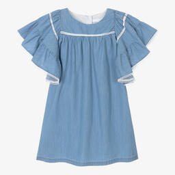 The girls pink ruffle sleeve dress by Chloé is crafted from soft organic cotton, featuring a beautifully embroidered logo on the front. The lightweight jersey fabric and angel sleeves ensure comfort, while the gathered skirt adds a touch of elegance. A discreet zip fastening at the back makes it easy to wear. Limited quantities available, so do not miss the chance to add this charming piece to your wardrobe.
