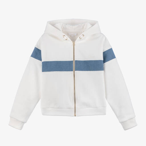 Chloéكارديغان تينز بناتي قطن كروشيه محبوك لون عاجي