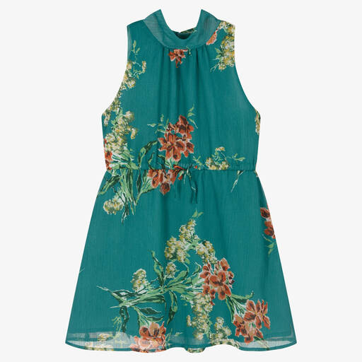 IKKSTeal Blue Floral Chiffon Dress