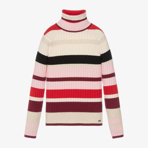 Sonia Rykiel Parisتوب بياقة عالية مقلم محبوك لون أحمر للبنات