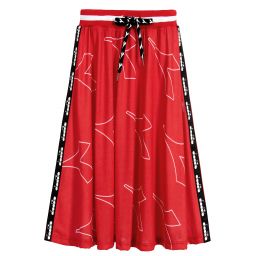 Girls sporty black long jersey skirt by Diadora, with white logo outline pattern and logo printed tapes on both sides. Stretchy and comfortable, it has a black and white striped elasticated waistband with branded drawstring to adjust.