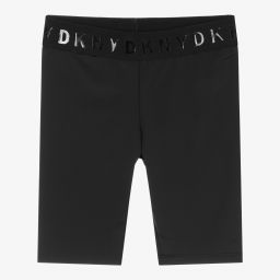 Teen girls orange lycra cycling shorts by DKNY, with a logo-branded stretchy waistband for a comfortable fit.