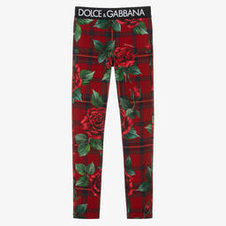 Girls floral pink jersey leggings by Dolce & Gabbana offer a delightful blend of comfort and style. Crafted from soft, stretchy cotton jersey, these leggings feature a vibrant pink rose pattern on a white backdrop, complemented by a subtle black script logo. Designed for easy wear, they include an elasticated waistband providing a snug fit. Suitable for casual outings, these leggings are in limited quantities, making them a must-have addition to any wardrobe.