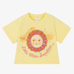 Pale ivory T-shirt for girls by Eirene, with a cute puppy and French macaroons printed on the front. Cropped in style and made in comfortable cotton jersey, it is hand-beaded, with the word 'Kisses!' in red beads in French and a navy blue striped Breton top on the puppy. There is a band of red stripes across the front of the T-shirt.
