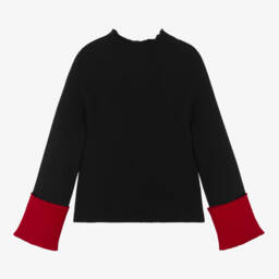 The girls black and yellow knit top by Elsy combines chic style with cosy comfort, crafted in a soft viscose blend. This mid-weight piece features a ribbed texture with long raglan sleeves and striking yellow cuffs, finished with a snug high neckline. Ideal for the cooler seasons, it's suitable for layering or wearing on its own. Limited quantities available, making it a must-have addition to the wardrobe.