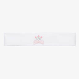 An adorable pale pink headband for baby girls, by Emile et Rose. Made in the softest cotton jersey, this accessory is delicate on little heads, with a comfortably elasticated back. It has a beautiful floral embroidery, with a tiny satin bow above.