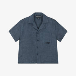 The boys beige short-sleeved linen shirt by Emporio Armani is perfect for a relaxed, stylish look in warm weather. Crafted from lightweight, woven linen, it features a casual fit with button fastenings and the iconic Eagle logo subtly embroidered on the chest pocket. This versatile piece is ideal for layering or wearing on its own, ensuring comfort and style. Limited quantities available, making it a must-have addition to any wardrobe.