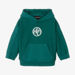 The boys khaki cotton hooded top by Emporio Armani features a soft jersey feel, crafted with a blend of cotton for comfort and stretch. The design includes tonal branding and layered-look sleeves, adding a stylish touch. A practical pouch pocket and ribbed cuffs complete the look, making it suitable for layering in cooler months. With limited quantities available, this piece offers a unique blend of style and functionality for young adventurers.