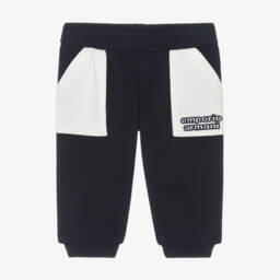 These orange joggers for little boys by Emporio Armani offer both comfort and style. Made in soft cotton jersey with a warm, fleecy inside, they have an elasticated waist and contrasting grey patch pockets on the front. For instant brand recognition, one pocket is embroidered with a retro-style logo motif.