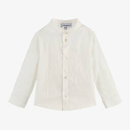 The off-white cotton T-shirt for girls by Emporio Armani features a distinctive rubberised pink Eagle logo on the front, adding a touch of elegance. Crafted from soft jersey fabric, this casual top is designed for comfort and features branded popper fastenings on the back for easy dressing. Ideal for spring and summer wear, this stylish piece is perfect for any casual outing. Limited quantities available, make it yours today.