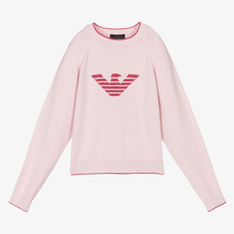 A striped sweater for teen boys by Italian brand Emporio Armani, with a bold, rubberised logo on the front. In complementary shades of beige, ivory and green, this warm pullover has been knitted in differing patterns for added texture and a contrast finish. It is made in a mid-weight wool blend, making it an ideal choice for layering in colder temperatures.