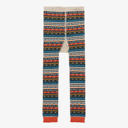 Cosy beige leggings for little girls from British brand Frugi, patterned with a rabbit and woodland pattern in shades of pink, green, blue, and brown. Made from a soft and stretchy organic cotton blend that is gentle against the skin, they are designed to be super-durable for crawling babies and will fit over cloth nappies. For a fun finish, these cute footless tights are patterned with a rabbit motif on the centre panel.
