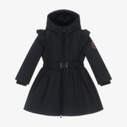 The girls navy hooded coat by Le Chic is crafted from woven recycled polyester, offering warmth and style for the autumn and winter seasons. Featuring a cosy hood and elegant ruffle detailing, this coat provides both protection and a touch of sophistication. With a secure belt fastening, it ensures a perfect fit, making it ideal for daily wear or special occasions. Limited quantities available, so seize the opportunity to add this fashionable piece to a wardrobe today.