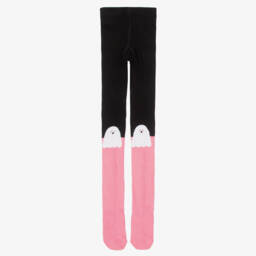 Pink and green tights for girls by Stella McCartney Kids, made in a soft and stretchy cotton blend. These cosy, full-length tights have a contrasting green lower leg and a fun pink heart design on both knees. The elasticated waistband ensures a snug fit, ideal for layering in the cooler months.