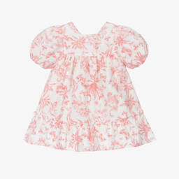 This pink and white babygrow for girls by Tartine et Chocolat features a charming Toile du Juoy pattern. Made in soft cotton jersey, it has pretty picot trims and patch pockets with delicate ricrac detailing. There are easy-to-use poppers on the front and between the legs for simple dressing.