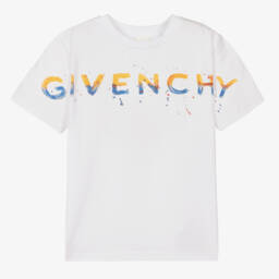 Khaki green cotton t-shirt for boys by Givenchy offers a touch of luxury with its soft jersey fabric. Featuring a striking white logo on the front and the iconic 4G logo at the back hem, this t-shirt is both stylish and comfortable. Ideal for casual outings in the spring and summer, it provides a fashionable yet relaxed fit. Act quickly, as there are limited quantities available of this chic piece.