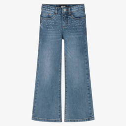 Dark blue wide-leg trousers by Guess for younger girls offer a stylish look with an elasticated waist and frayed hems. The soft denim is composed of a blend of lyocell and cotton, ensuring comfort and durability. The back pocket features an embroidered logo in gold thread, adding a touch of elegance. Perfect for casual outings, these trousers combine practicality with a designer flair. Limited quantities available, so secure this fashionable piece now.