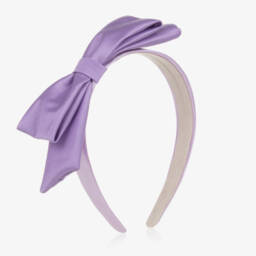 Beautiful sky blue hairband for girls from Hucklebones London, exclusive to Childrensalon. This elegant design features a wide satin-covered band with a large side bow detail in metallic blue crêpe fabric, adding a glamorous touch to any outfit.