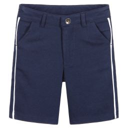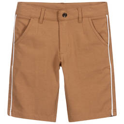 Boys beige soft cotton jersey shorts by iDo Baby, with a smart white trim on the sides. Slim fitting, they have a hook and zip fastening in the front and an adjustable waistband. There are useful side pockets and faux pockets on the back.