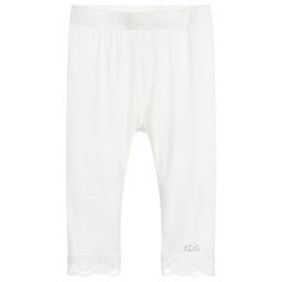 Girls navy blue long leggings from iDO Baby, made in super soft viscose jersey. The cuffs are trimmed in lace and the waistband is elasticated.