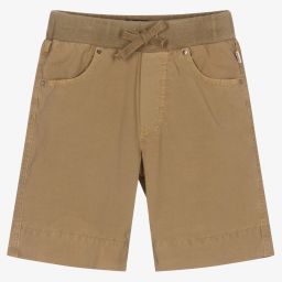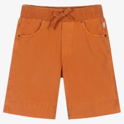 Rust orange shorts for boys by Il Gufo, made in beautifully lightweight cotton poplin. Comfortable to wear, they have a lightly elasticated drawstring cotton jersey waistband. There are useful front and back pockets and a small branded tab on one side.