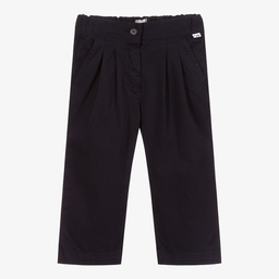 Girls khaki green, wide-leg trousers from Italian brand Il Gufo. They are made in soft cotton twill, with pleats on the front. They have slanted side pockets and a partly elasticated waistband.