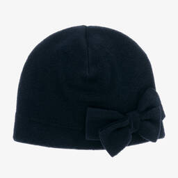 Ivory beanie hat for girls by luxury Italian brand Il Gufo, made in the softest viscose blend fleece. Warm and cosy, it has a cute bow on the front.