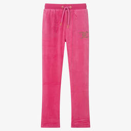 These bright blue joggers for teen girls by Juicy Couture, are designed in a modern flared style. Ideal for relaxing in, they are made in super soft velour, with side seam pockets, patch pockets on the back and a comfortable drawstring waist. For a glamorous finish, a sparkling gold diamanté logo motif is featured on the front, for instant designer recognition.