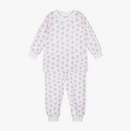 Girls white pink bows pyjamas by Kissy Kissy, crafted from super soft and stretchy Pima cotton jersey. These charming pyjamas feature an all-over pink bow print and white ribbed trims, along with a comfortable elasticated waistband. Ideal for cosy nights, these pyjamas are a must-have for your little one. Limited quantities available – last chance to buy!