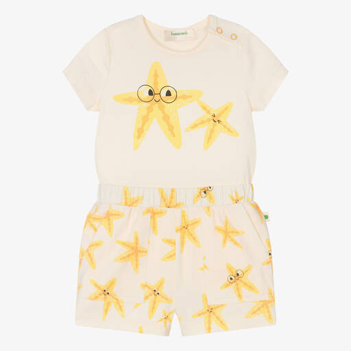 Boboliطقم شورت وتوب قطن جيرسي لون عاجي وأسود للأولاد