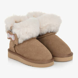 Made from smooth suede leather, these grey boots for girls are by Lelli Kelly. Ideal for the cooler weather, they have super soft faux fur cuffs and lining. There is a pretty bow detail on the side with a pink and silver diamanté embellishment for an added touch of sparkle. Easy to pull on, they have a non-slip rubber outsole and a pale blue logo patch on the heel.