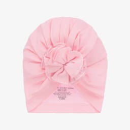 A lilac purple turban hat for baby girls by Lemon Loves Layette, made in beautifully soft Pima cotton jersey. This lightweight hat is gathered at the front with a floral rosette for a pretty finish.