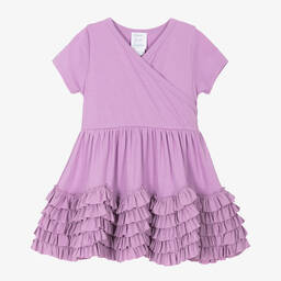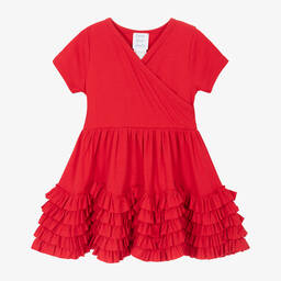 A lovely pink dress for girls by Lemon Loves Layette, made in soft and lightweight Pima cotton jersey. This sweet dress pulls on easily over the head, has a cross-over bodice and a gorgeous ruffle hem.