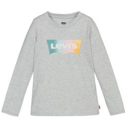 Graphic blue top for boys by Levi's, made in soft organic cotton jersey. Printed with a brown mountain bear on the front, it has a fun neon green torch lighting up the moon and highlighting the brand's logo. Casual and crew neck, it has a popper fastening on the front for easy dressing.