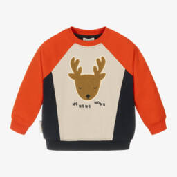 This ivory festive sweatshirt for junior boys by Liewood features a charming Christmas design with a tree, snowman, and reindeer on the front. Crafted from soft organic cotton jersey, the garment includes a stylish color block pattern in tan brown, Navy Blue, and ivory. Great choice for staying cozy and stylish during the colder months, it's a last chance to buy this limited edition piece.