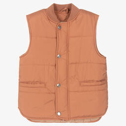A lovely golden brown gilet for boys and girls by Danish brand Liewood. Outdoor-ready, this practical jacket is wind resistant with a BIONIC-FINISH® ECO water-repellent finish and secures with a zip under a popper fastening flap. It is made from smooth recycled polyester with a ribbed neckline, handy front pockets and a logo patch on the back. So versatile, it can be worn on its own or as an extra layering piece.