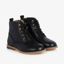 Black boots for girls from Mama Luma, with easy-to-fasten side zips. The uppers, lining and insoles are made in soft faux leather for comfort with each little step. A fun twist on a classic style, they are designed with fluffy faux-fur pom-poms on the front. They have comfortably padded insoles for support, a small heel and rubberised soles with non-slip treads for safety.