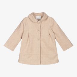 Traditional pink coat for baby girls by Mayoral Newborn. Beautifully soft and with a plush lining, this smart coat has a rounded collar, button fastenings on the front and a bow on the back.