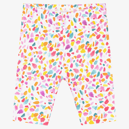 Little girls lovely white and navy blue polka dot leggings from Mayoral, with an all over red and green floral print. They are made from soft and comfortable cotton jersey in a cropped length with a gently elasticated waist.