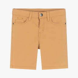 Light beige cotton shorts for boys by Mayoral, crafted from smooth sustainable cotton. Perfect for warmer days, these stylish shorts feature five pocket styling with a small logo tab on the front, ensuring a chic look. The shorts fasten easily with a popper and have an adjustable waist to allow room for growth. Limited quantities available, so act fast to secure this versatile addition to your child's wardrobe.