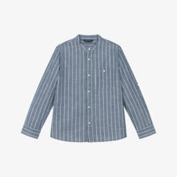 Boys collarless cotton shirt in white by Mayoral Nukutavake offers a sophisticated look for older boys. Crafted from soft, lightweight cotton with a linen-like appearance, it features practical roll-up sleeves secured with buttons and a handy chest pocket. Perfect for warm days, this shirt effortlessly combines style with comfort. Limited quantities available, making it a must-have addition to a spring or summer wardrobe.