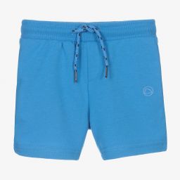Red shorts for little boys by Mayoral, made in soft polycotton jersey. They have a drawstring waist and a small, subtle logo print on the front.